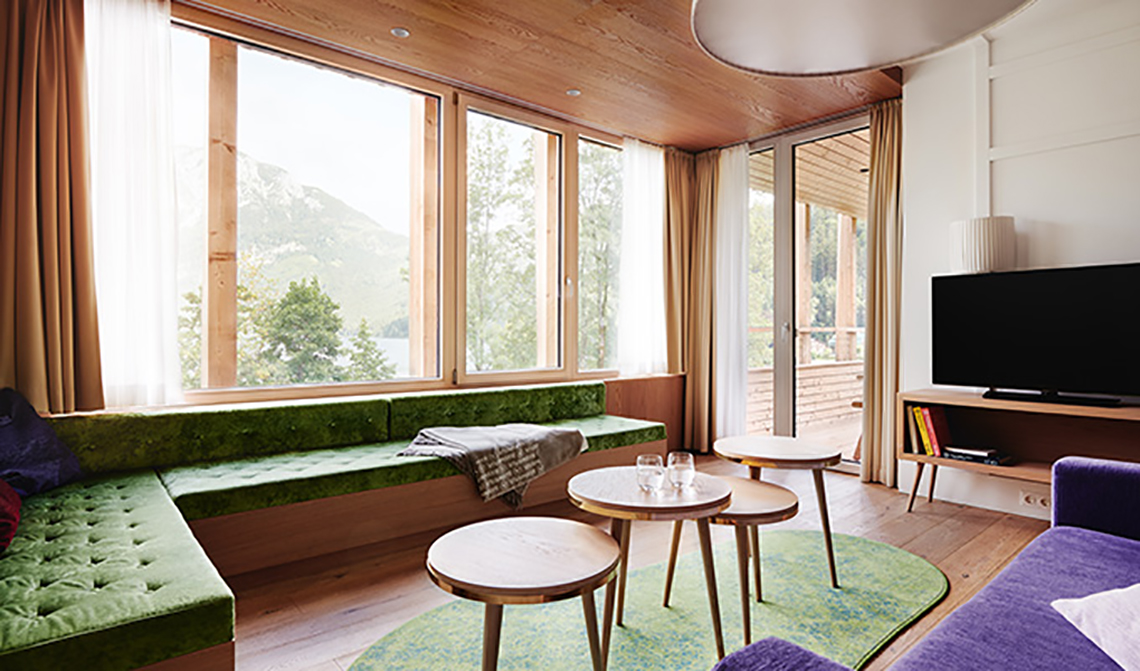 VIVAMAYR Resort度假酒店位于奧爾陶斯湖(Lake Altaussee)湖畔,是個大型的天然綠洲療養圣地,周圍群山的純凈和諧地協調著身心,營造出一種深刻的和平與平衡感。奧地利凱得木業集團為酒店提供了1400平方米的產品,簡單的設計,溫潤的木質感,與自然隔窗對望,為客人打造奢華的住宿享受。