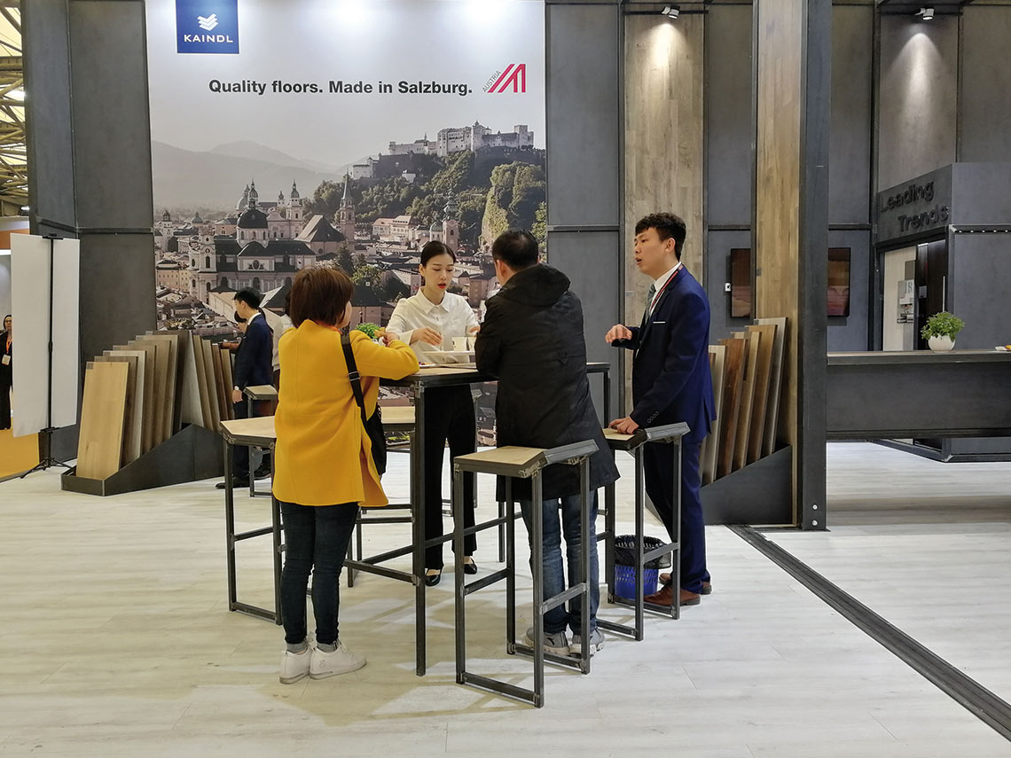 在過去的2019年3月26-28日舉行的第21屆上海國際地材展DOMOTEX上,薩爾茨堡的革新風向標——凱得,在占地150平米的展廳中向觀眾展示了奧地利生產的優質且種類繁多的地板系列,以其設計和表面多樣性引人注目。凱得稱之為:品質地板,薩爾茨堡制造。
