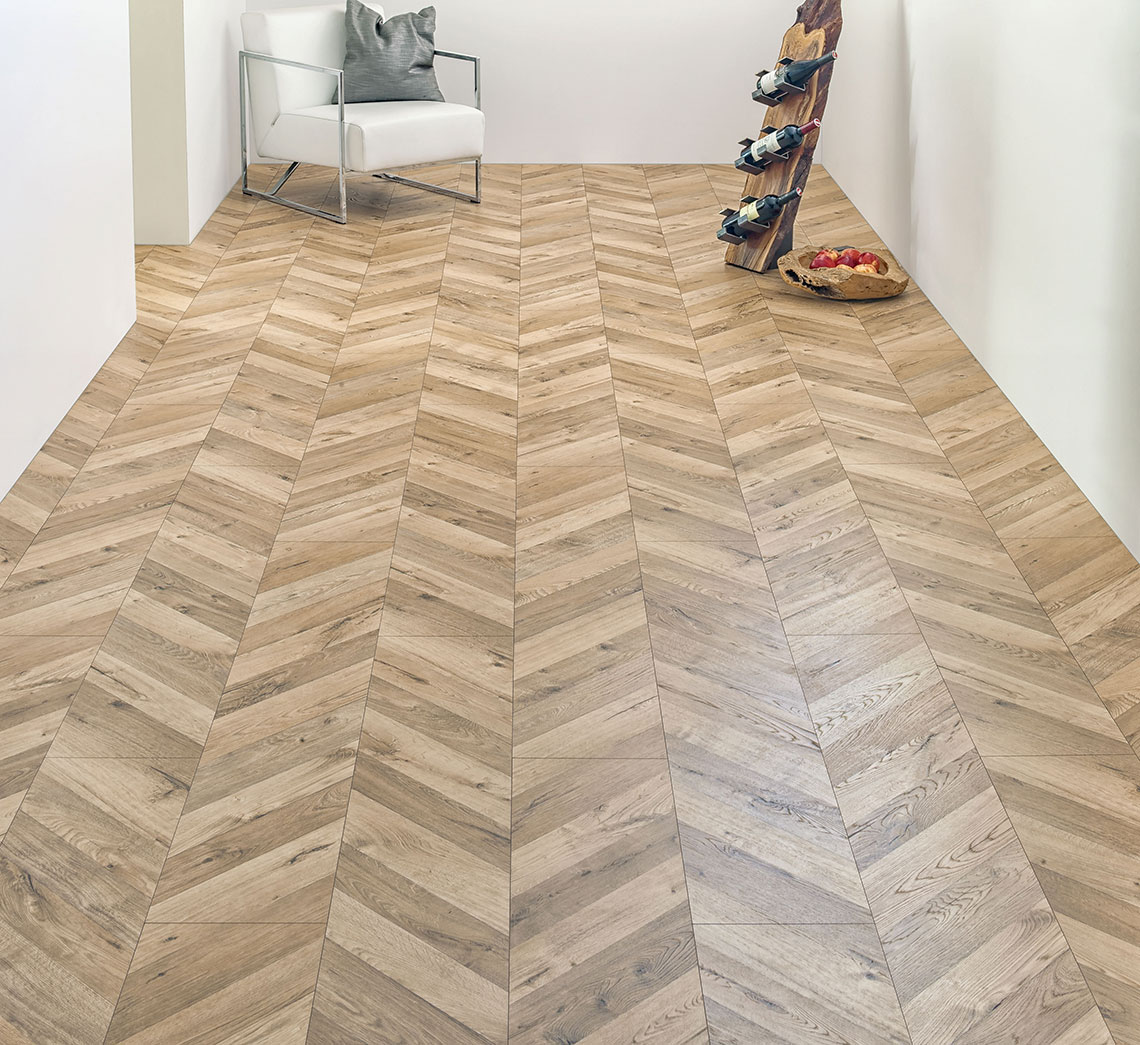 魚骨拼,靈感來源于魚骨的造型,地板就像就像魚骨頭一樣錯落有序地排列開來,略帶設計感的藝術化處理,讓地板既像魚骨,又像連綿不斷的山峰,產生規整中的變化、冷靜中的氣勢,帶有輕復古的貴族氣質,大氣優雅,使人眼前一亮。