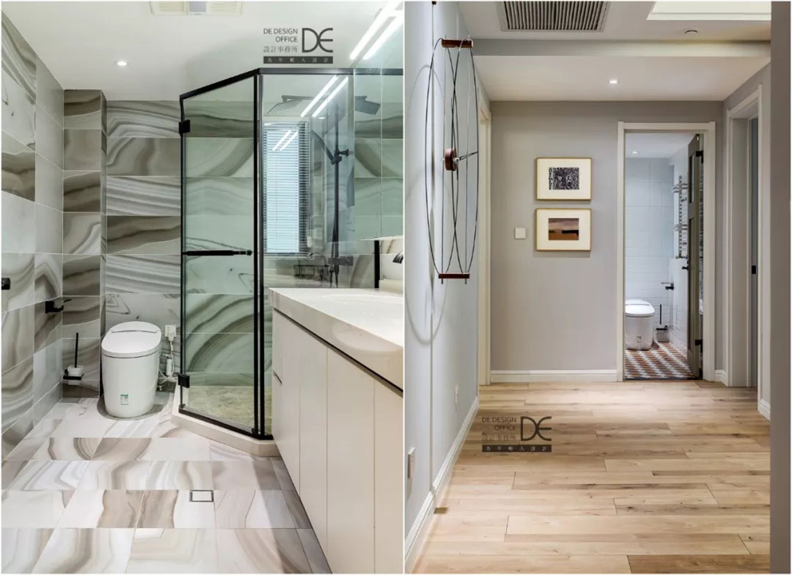 業主最愛的主衛,寬敞明亮帶有石材紋理的瓷磚,與整個空間的木色相呼應,一切元素都憧憬天空和大海,蘊藏著豐厚的能量,撲面而來的自由與暢快,宛若海浪連綿不斷。