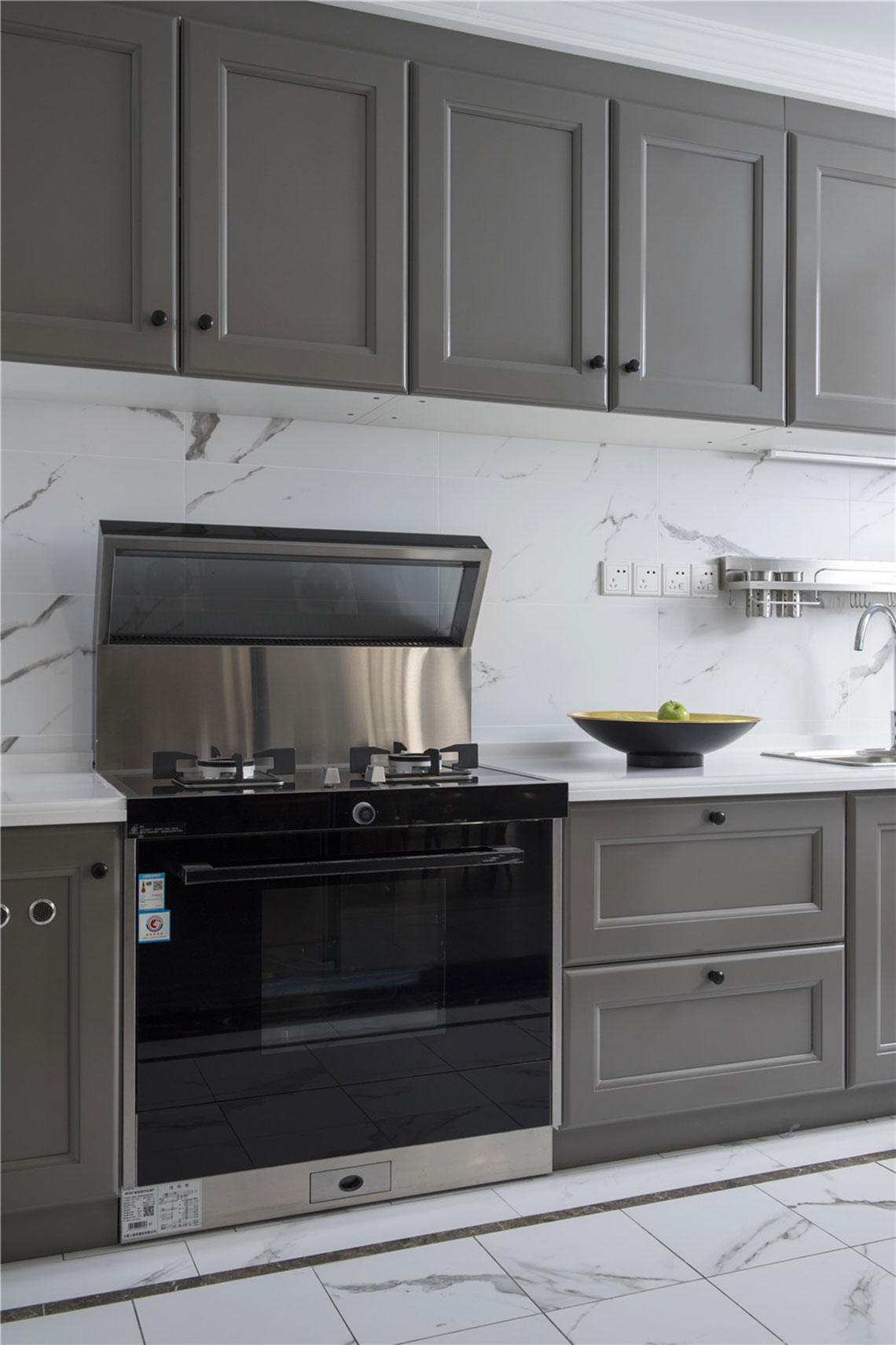 右側一面墻的灰白色柜子