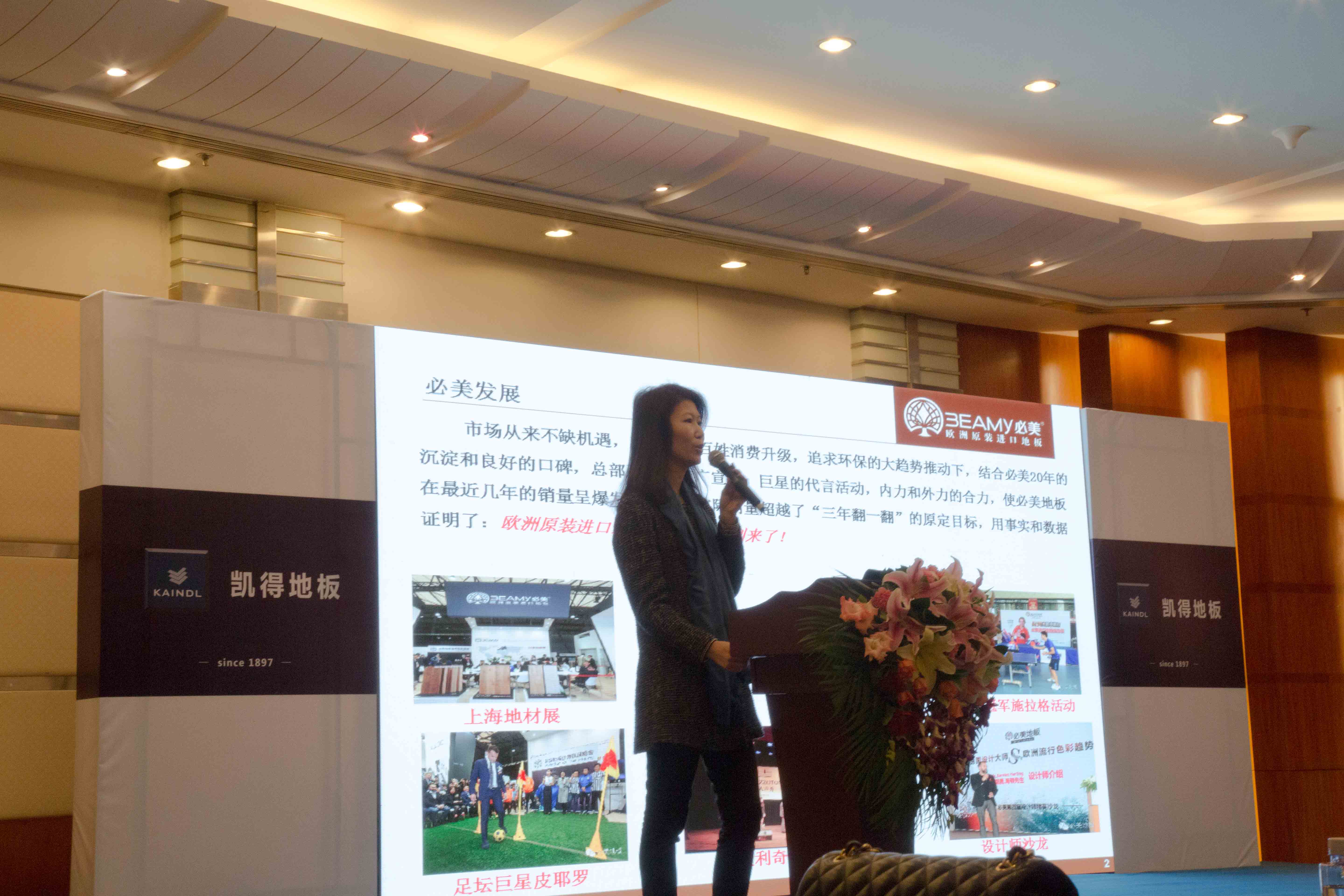 峰會以一場別致的沙畫表演拉開帷幕,在主持人對奧地利凱得地板發展的介紹下,沙畫師緩緩地呈現出一幅幅凱得的重要里程碑圖片,慢慢為我們掀開凱得的神秘面紗。緊接著,必美國際集團總裁孫海源先生上臺為我們介紹了凱得的概況、凱得地板的潮流花色以及凱得地板出色的環保概念,孫總有趣的發言引得嘉賓拍手贊同。