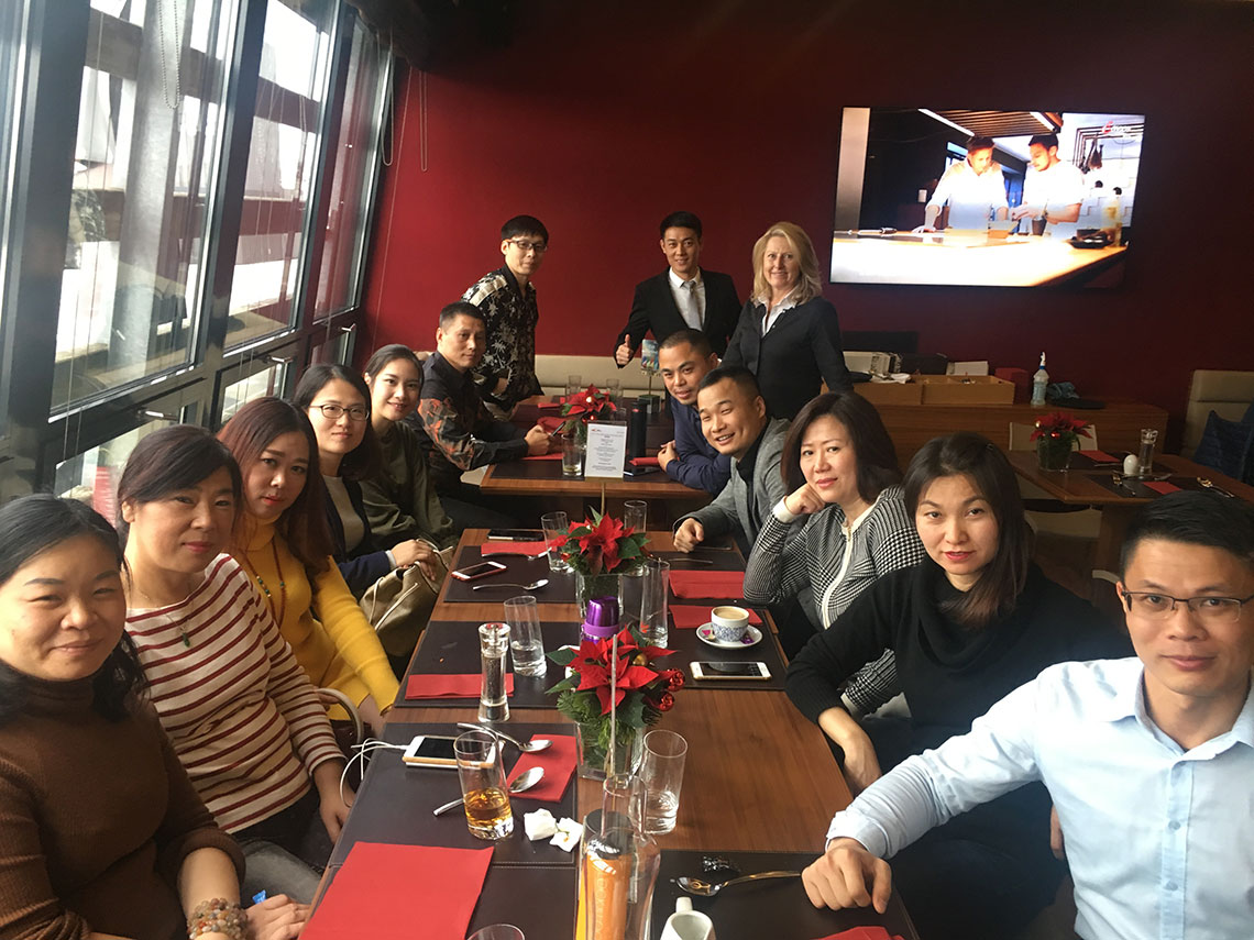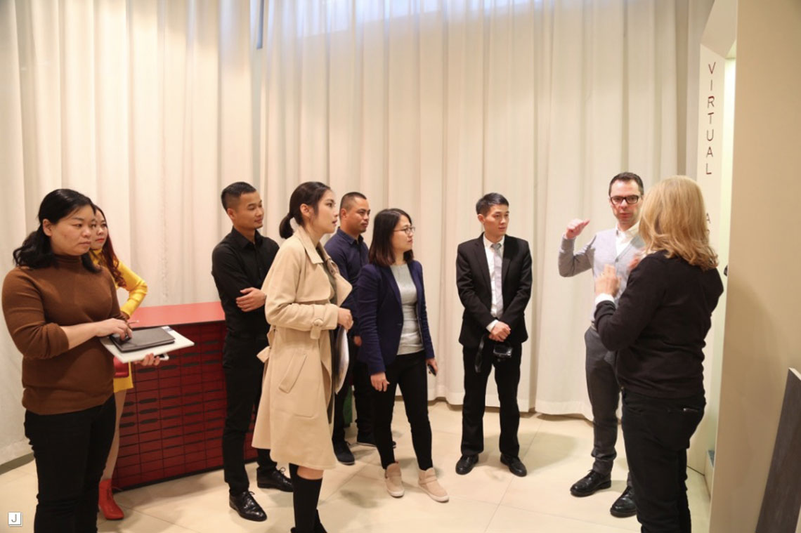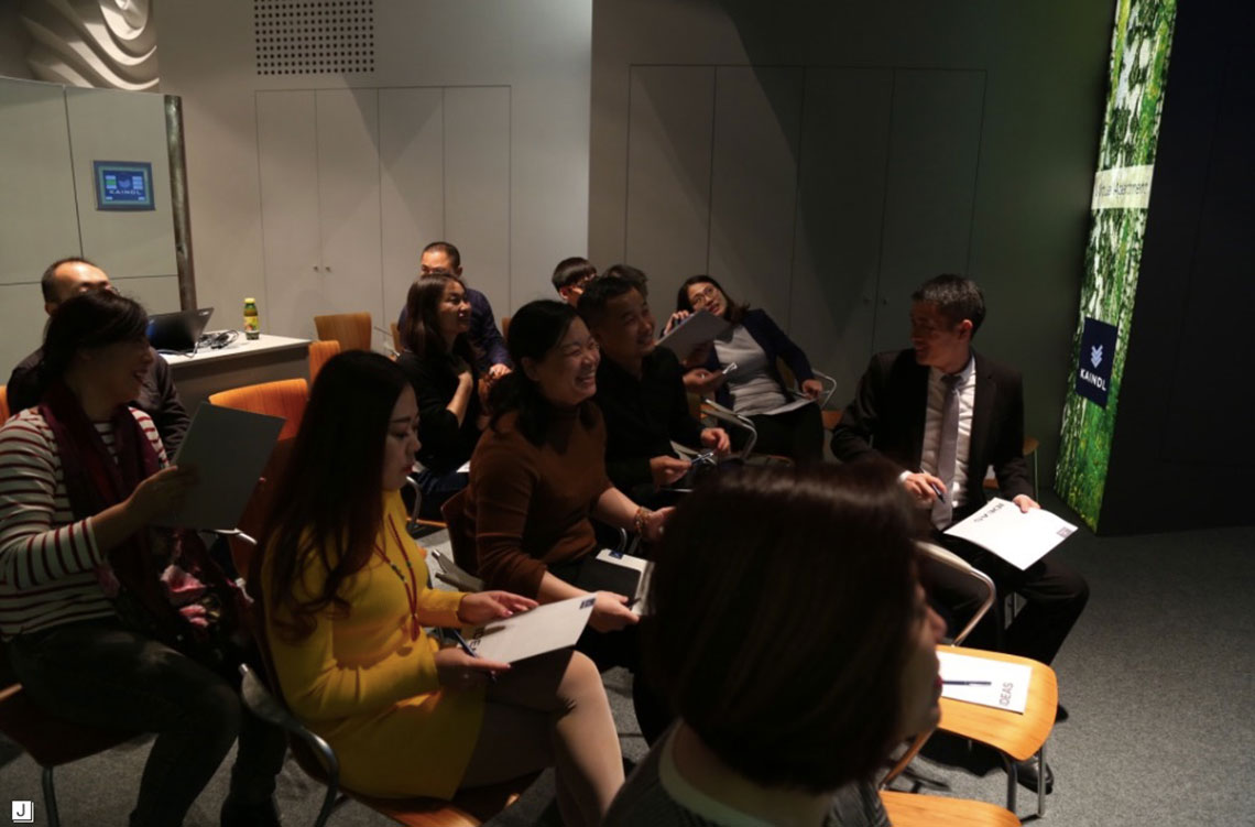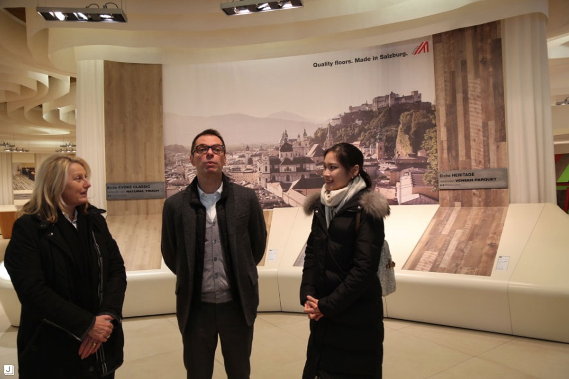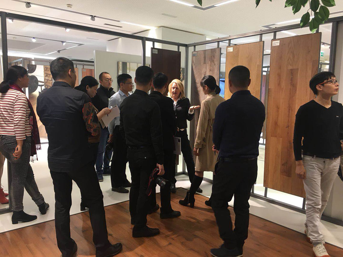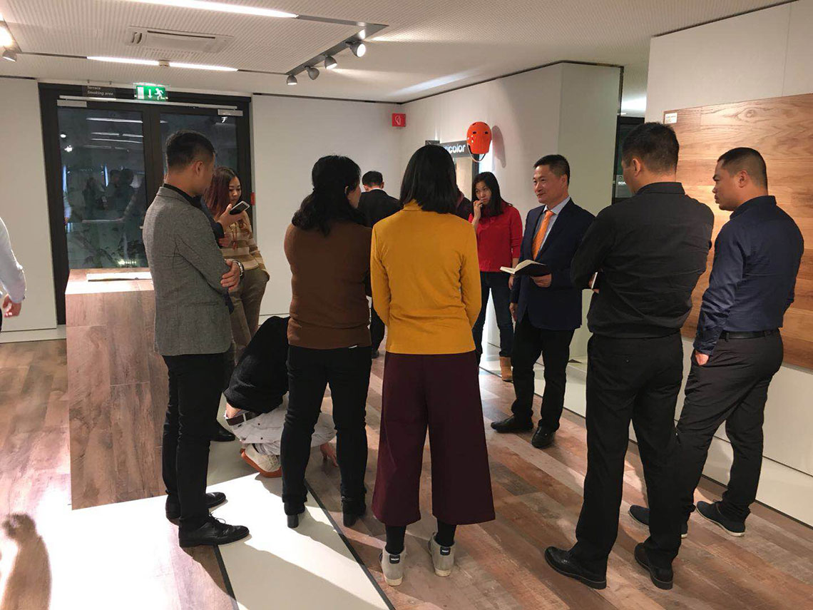 參觀完畢后,考察團一行正式前往奧地利凱得地板工廠,凱得集團全球銷售總監Thomas Winter(托馬斯.文特)及其助理熱情接待了中國銷售代表,下午雙方在凱得地板工廠新展廳展開培訓。