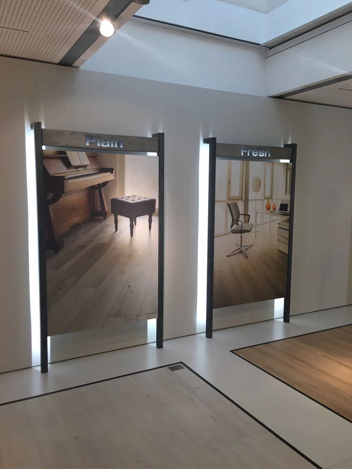 品質地板,薩爾茨堡制造。在薩爾茨堡的凱得地板展示中心,Thomas為考察團介紹了一批十分新穎的地板產品,它們拋開了從地板結構所進行的分類,而是從表面的花色來做區分。